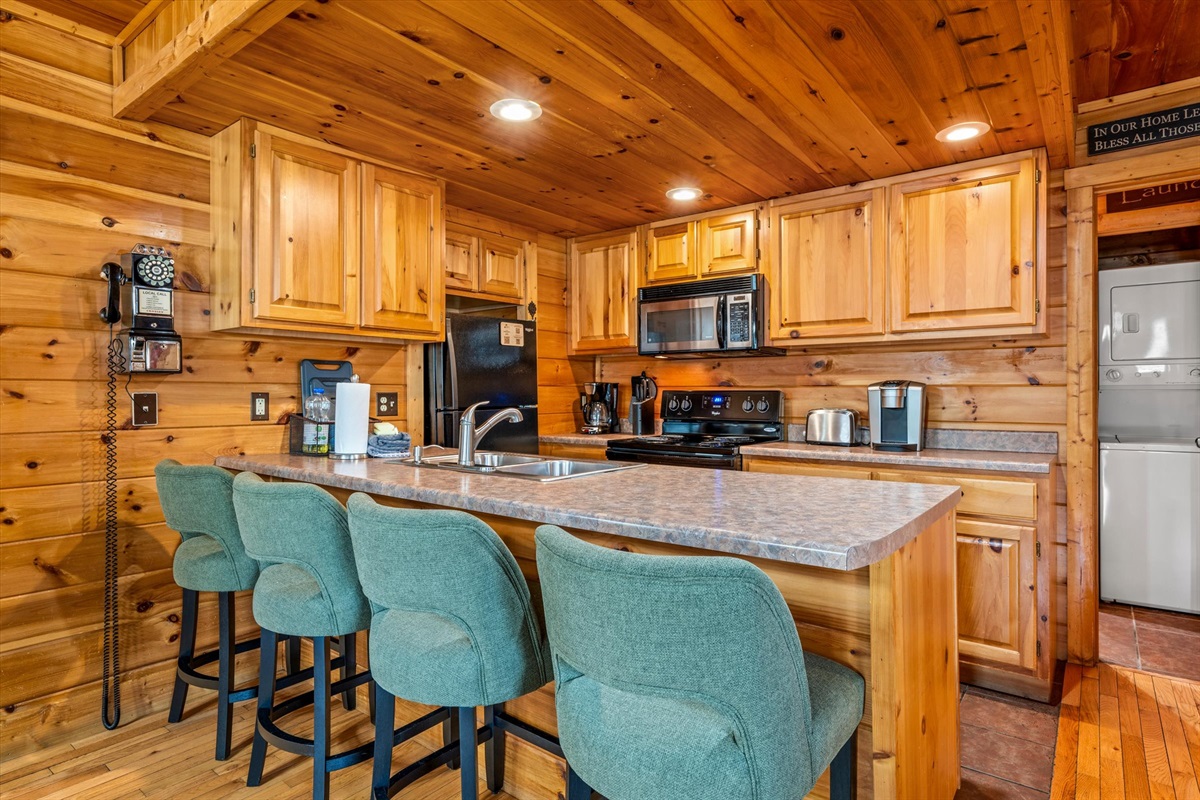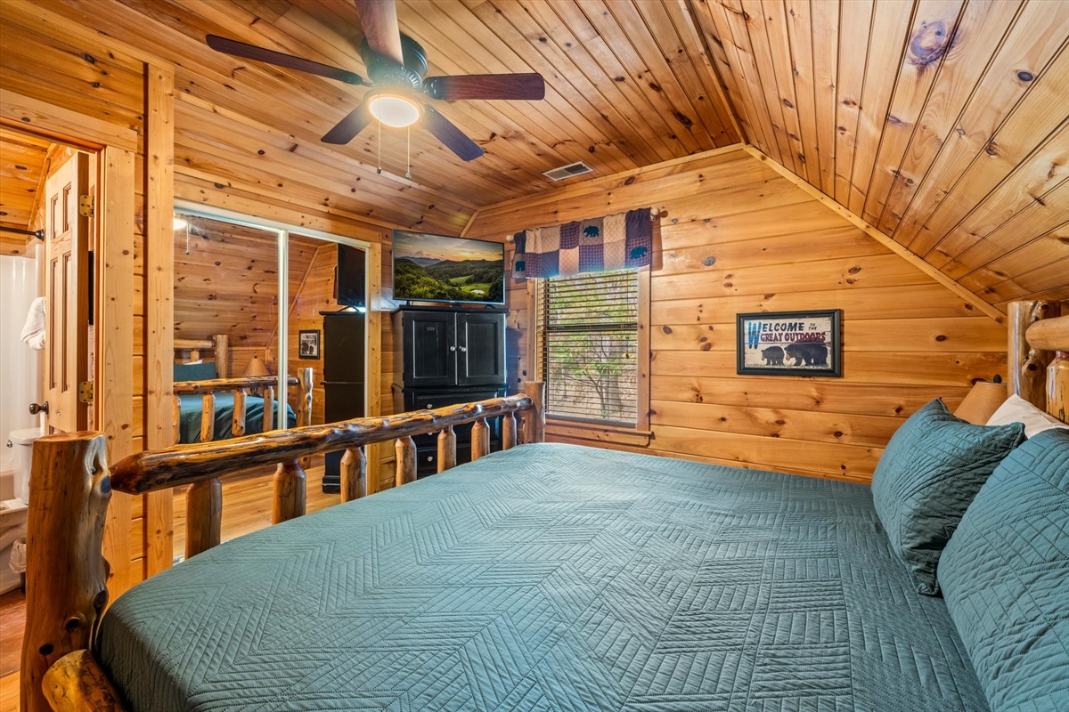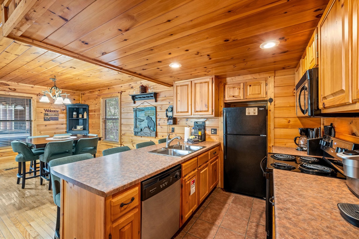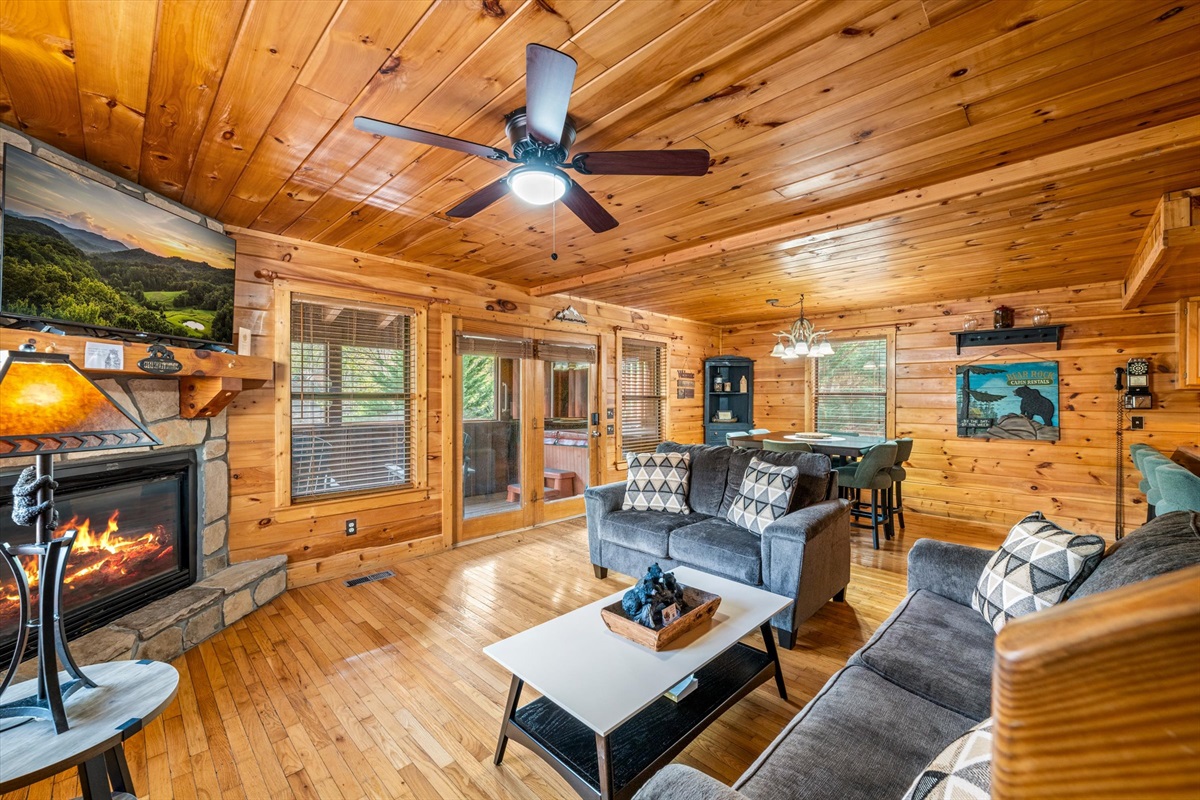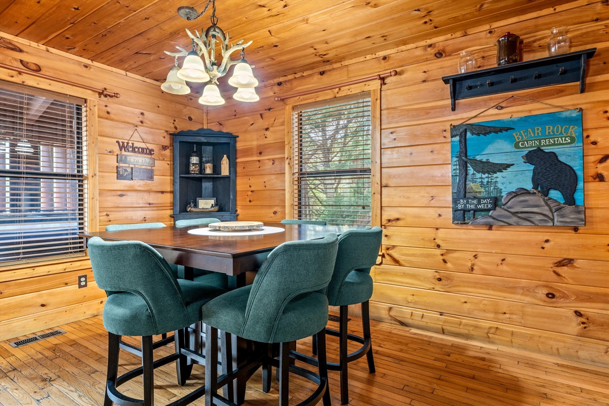 You'll enjoy the brand new 55" Roku TV in the living room while lounging on the comfortable couches. There's plenty of dining space at the table and countertops and the kitchen is stocked with dishes and cups for days! Both bathrooms have a jacuzzi tub for your enjoyment in private if you're not up for soaking in the hot tub under the whimsical string lights. The screened porch allows you to enjoy the outdoors whether it's sunny, rainy, or snowy! There is a natural gas grill available for whipping up delicious meals. There is a full sized pool table upstairs with lots of other board games! There are 2 king beds, 1 full/queen sleeper sofa, and 1 full/queen futon.